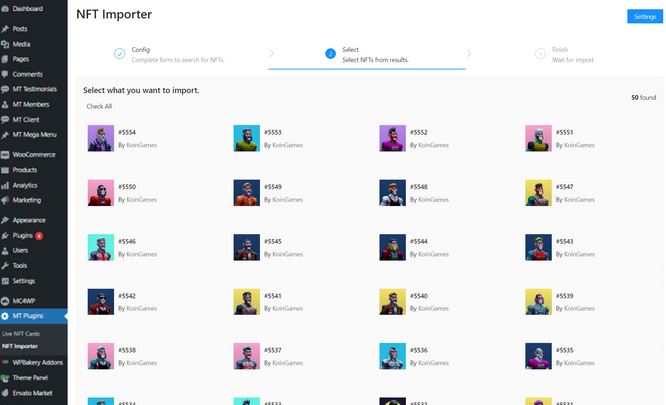 MFT NFT Cards: this VueJS & WordPress plugin lets you list NFT cards from OpenSea.io in real-time. It has 4 card layouts for you to choose from. Another plugin for NFT affiliates.