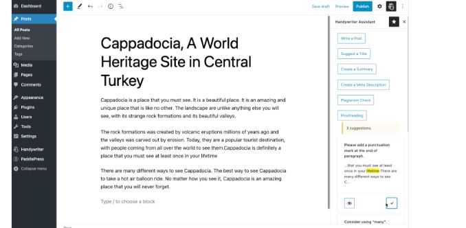 HandyWriter: this app provides you assistance with content creation and image generation. It can write you a blog post, recommend titles, create meta descriptions, and turn text to speech. It also checks for plagiarism.