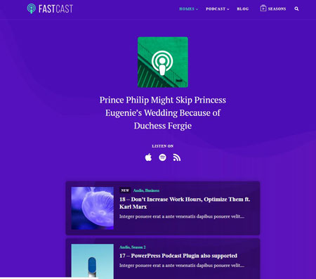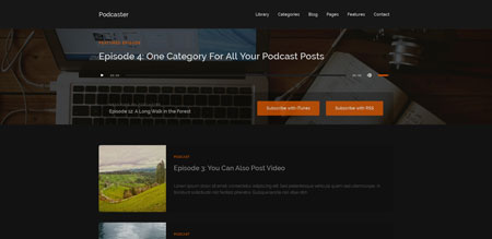 Podcaster: lets you create and manage your own podcast program. It is responsive and video ready. Podcaster supports Blubrry PowerPress, Seriously Simple Podcasting, and Libsyn.