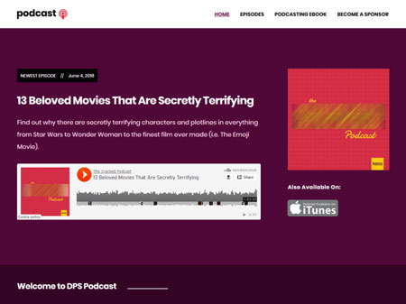 Podcaster SecondLine: a lightweight theme for podcasts, video programs, and other media sites. It doesn’t have unnecessary bells and whistles and puts the focus mainly on your content.