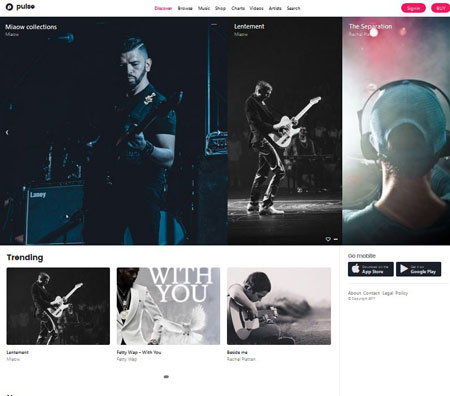 Pulse: an AJAX powered theme for audio, radio, and other music sites. It lets you sell audio files to your customers. The theme has dark and white modes.