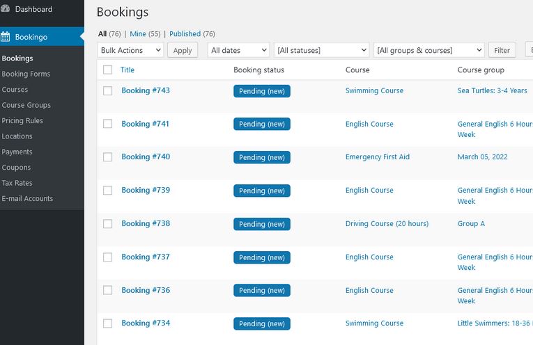 Bookingo: this is a handy plugin for chess teachers. It is useful for those offering their own courses and training materials. It supports unlimited # of booking forms, courses, and course groups.