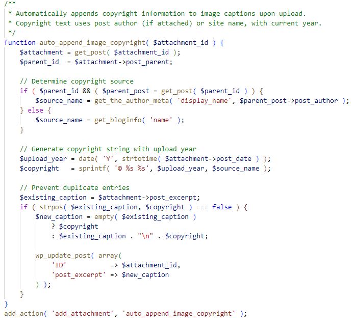 WordPress Code: How to Add Copyright Attribution To Images Based on Context