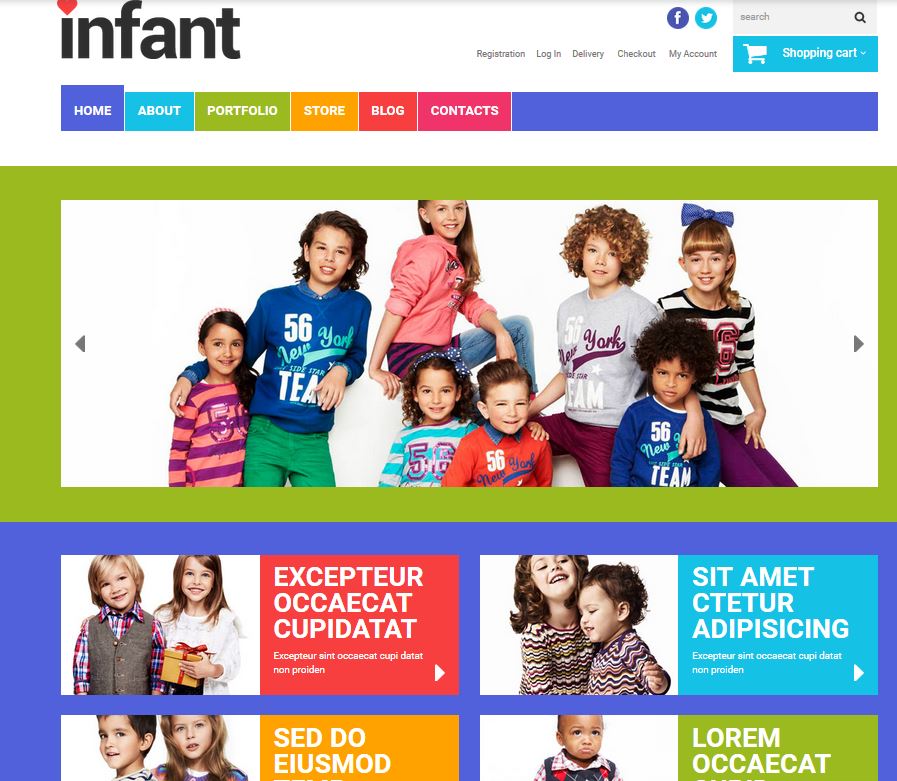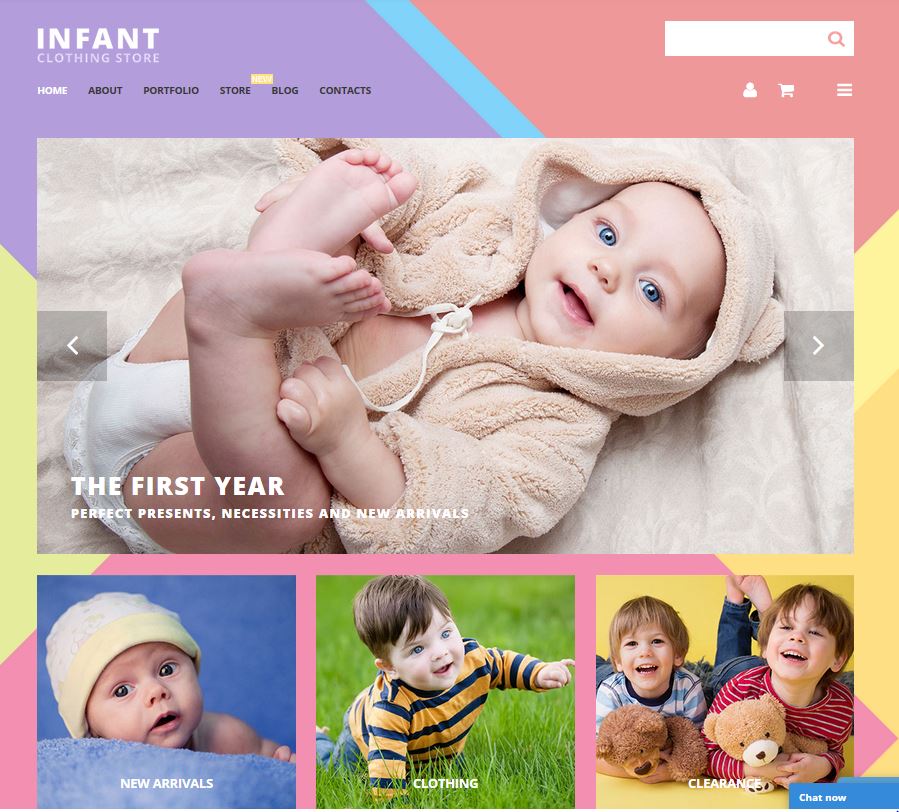 Infant Clothing Store: a bold, colorful WooCommerce theme for selling products for infants. It is based on Cherry Framework and Bootstrap. It has gorgeous call to action options.