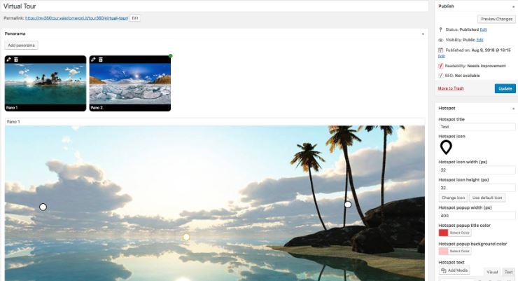 WordPress Virtual Tour: you can use this plugin to create interactive 360-degree panoramic virtual tours. It offers WooCommerce integration. It is compatible Elementor and WPBakery Page Builder. It supports auto rotating panoramas.