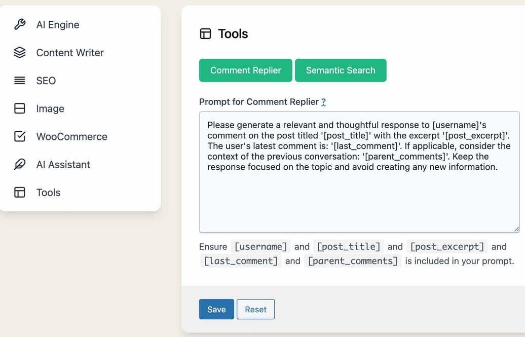 Comments Engine AI: a clever plugin that uses AI to generate comments below your posts. Just choose the number of comments you want, their tone and dates to get started.